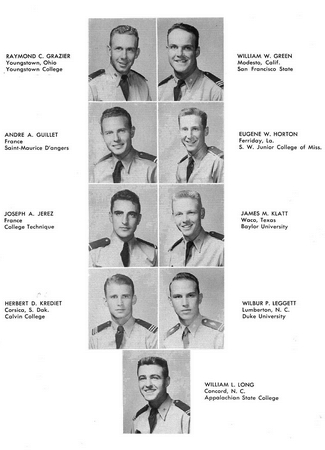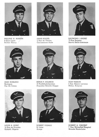 Raymond André - André Bartholomot - Gilbert Bron - Alain Carron - Georges Cauvin - Robert Césari (M.S.A.C) - André Cessou - Serge Cessou - Pierre Charade - Christian Chatel - Claude Cholin - Jacques Chuat - Serge Courbin - Emmanuel D'Herbes - André Debièvre - Guy Denis - Serge Dolbeck - Daniel Dufermont - Louis Durif - Gilbert Enel - Armand Erbani - Henry Ferey - Georges Fleury - Jack Gilbert - Roger Girard - Henri Grudé - Jean Haller - Raymond Henry - Gilbert Hospital - Pierre Janniot - Jean Houssin de Saint-Laurent - Pierre Lacroix- Jean-Claude Ladeuil - André Lala - Bernard Langle - Michel Langlois - Michel Le Brech - Jean Lefebvre - Robert Mailfert - Christian Mancon - Bernard Mansion - Pierre Martin - Philippe Martin - Yves Martin - Jean Massot - Jean Mendiharat - Jean Moirat - Gilbert Pagnot - Lucien Pion - Lucien Porte - Jean Robledo - Denis Roger - Hervé Rollin - Guy Roussel - Louis Saliou - Michel Sassours - Michel Seguin - Jean Tesson - Guy Treville - René Vanaud - Robert Vigneau - Robert Vincent - Jacques Vissac. Eliminés : Jacques Coursilly - Roland Garnung - Michel Gautier (Repris en France).