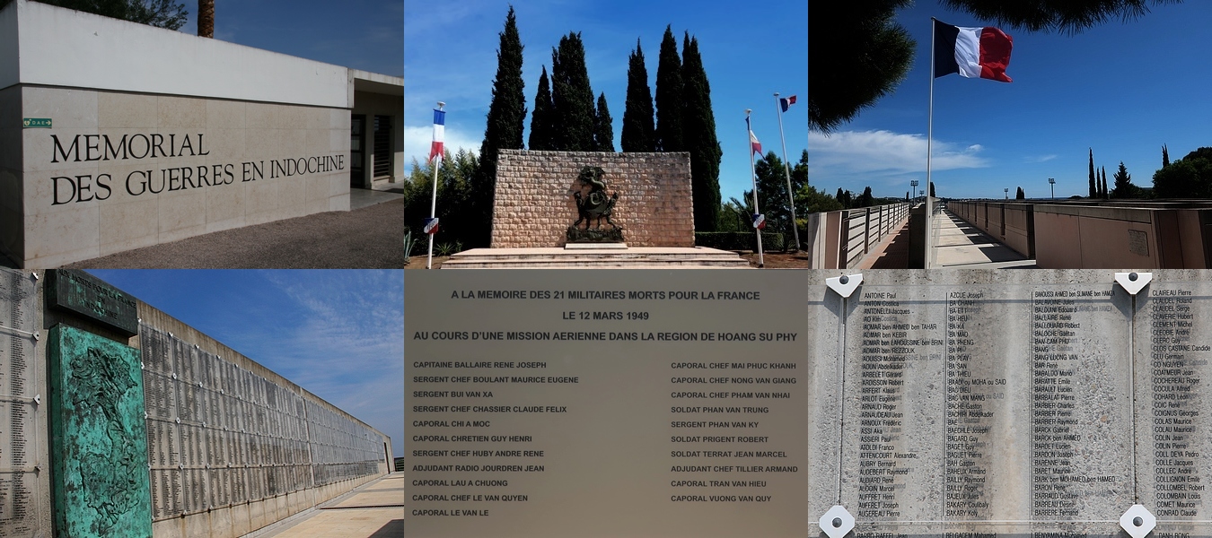 Mémorial des guerres en Indochine - Fréjus (Var). Une cérémonie d'hommage à la mémoire de 21 militaires Français et Vietnamiens morts pour la France le 12 Mars 1949 au cours d'une mission aérienne dans la région de Hoang Su Phy s'est déroulée le 15 octobre 2018 en présence des autorités Françaises. Les corps des militaires inhumés dans le nord du Tonkin ont été rapatriés au Mémorial des guerres en Indochine de Fréjus. Parmi eux le Capitaine Réné Ballaire (21ème détachement), Commandant en second du G.T.A 1/64 "Béarn".