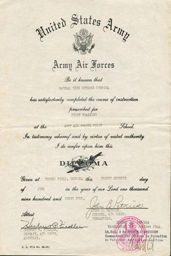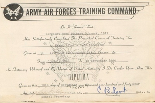 Diplomes : Pilot Training - Qualification 1rst Pilot (Army Air Force Training Command).