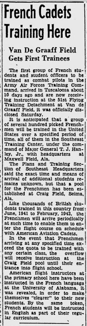 - 1er Août 1943 : French Cadets Find "Le Paradis" As They "Cheeck" In At Tuscaloosa.