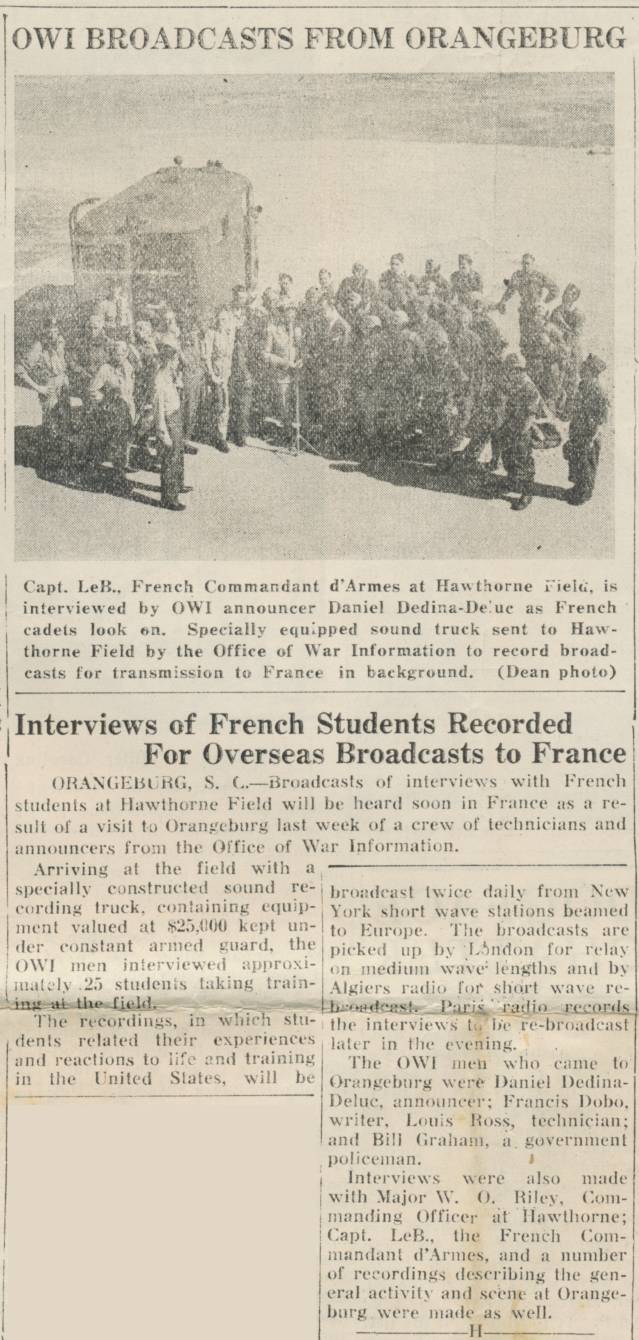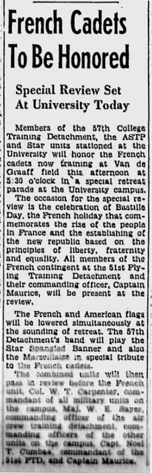 - 14 Juillet 1943 : "French Cadets To Be Honored" (p3).