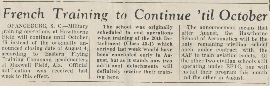 - 15 Mai 1945 : Hawthorne Field to Close August 4th. Head of French Training Visits.