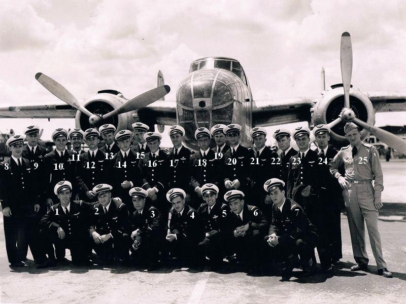 Turner Field (Georgie) - Graduation du 13ème détachement (Bimoteur) - 13.04.1945. (Par ordre alphabétique) Roger Autissier - Gabriel Baudry - Maurice Beraud Dufour - Georges Bernardini - Jean Blanchon - Maurice Bouhier - Robert Bouin - Georges Cornuot - Michel Cosman - Jean Daridan - Jean Geneves - Robert Grobier - (11) René Lambert - (21) Ange Leca - Joseph Magliolo - Henri Marion - Louis Midi - Lionel Monrose - Paul Neubert - Guy Picardat - Jacques Roze - François Tanis - Michel Thiret - Christian Wavelet.