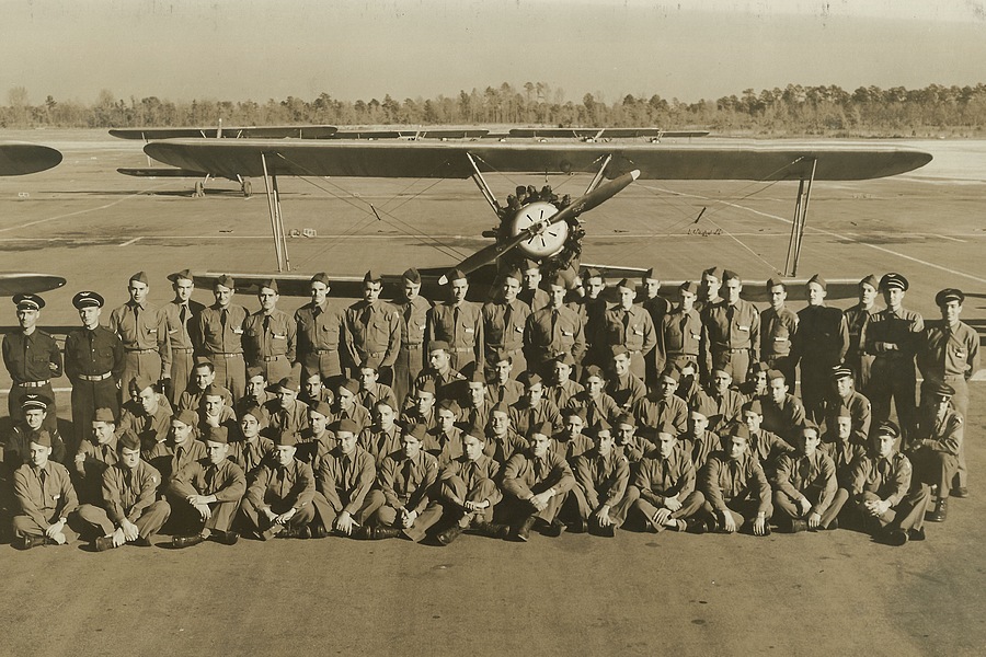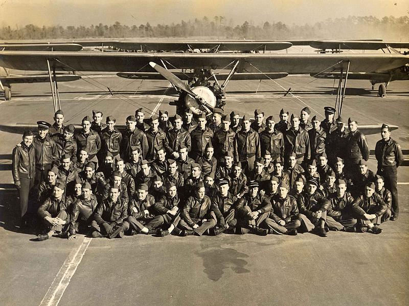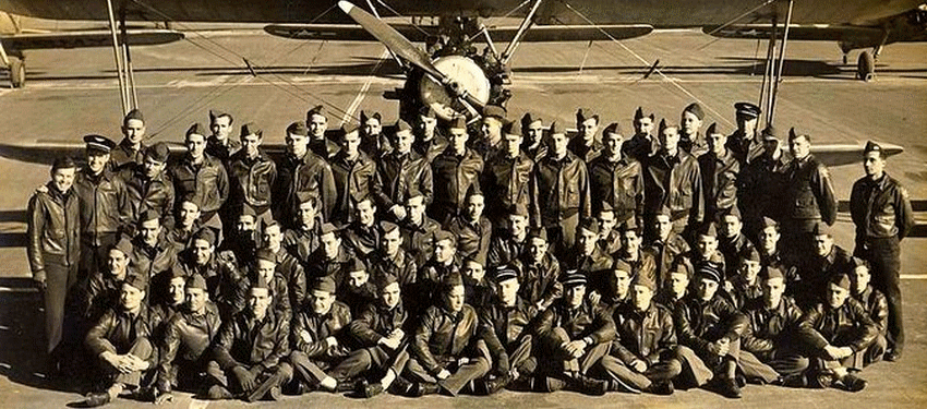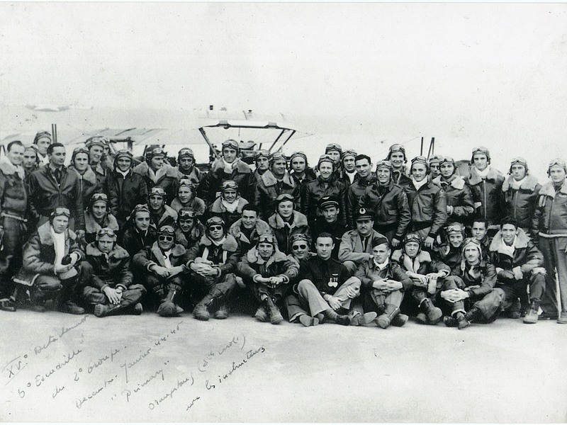 Photo 2 : 5ème escadrille - 2ème groupe - Décembre/Janvier 1944-45 - Avec les instructeurs : (à identifier).