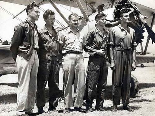 Photo 1 : Bernard Danton - Robert Gilton - Coburn (Moniteur US) - Alphonse Peccini - Pierre Vincent.