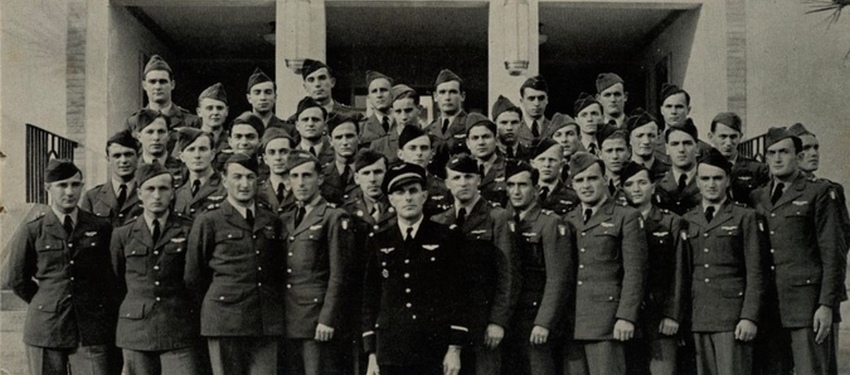 Graduation du 25 Juin 1945 - Tyndall Field (Floride). 25 Juin 1945 : Georges Allègre - Dominique Andarelli - Werner Anstett - Robert Audonnet - André Bastiéri - Yvon Baude - Frantz Begary - Yves Bellu - Jacques Beraud - Gaston Bergeret - François Bernardini - Raymond Bisson - Marcel Cabrera - Paul Caldes - Henri Chastang - René Choquer - Joseph Concialdi - Jacques Dalet - André Delheure - François Delpech - Gabriel Derel - Jean Drouin - Lucien Foulquier - Paul Franchi - Georges François - Roger Gautier - Etienne Haramboure - Robert Hie - Pierre Iteprat - Roger Ladoux - Pierre Lasfargues - Roger Lalande - François Maniacci - Norbert Manzini - Henri Mathias - Yvon Mazeyrac - André Marchi - Michel Michenaud - Yvan Monticelli - Paul Natali - Guy Paulus - Gabriel Pepe - Gilbert Pipe - Elisee Pin - Charles Poirault - Bernardin Poli - Yves Pratz - Maurice Pudu - Max Ragaru - Jean Reveillac - Pierre Rieu - Henri Ruf - José Sintes - André Velasco - Albert Zurita - Pierre Battle.