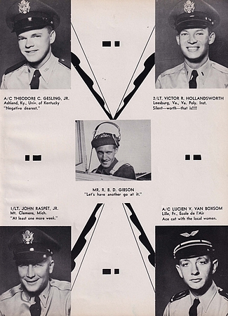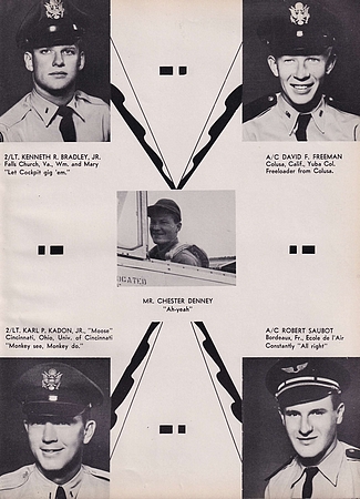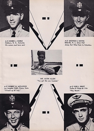 Preflight / Primary Training du 16.01.1952 au 06.08.1952. Claude Chirouze - Victor Choupault - Roger Demotier - Marcel Lejeune - Bernard Quentier. Décalés : Jean Lelous (CLASS 53-B).