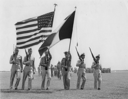 Dans les bases de l'US Air Force, fréquentées par les cadets français, la référence au drapeau est présente dès le matin (lever des couleurs à 6 heures). Symboles de la coopération militaire engagée dans le cadre des CFPNA, les drapeaux Américains et Français paradent de concert lors des défilés ou parades militaires réglés avec une précision extrême.