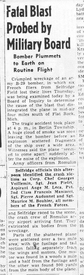 - 20 Juillet 1945 : "Pilot Dies in a Mid-Air Collision" (p1, col 1)