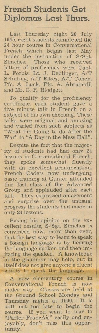 - 3 Août 1945 : French Students Gets Diploma Last Thurs.