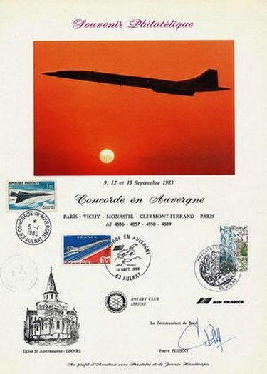 Souvenir Philathélique - Vol Air France 4753 du 23.05.1983 - Concorde - CLERMONT Aulnat - Commandant de Bord Pierre Plisson (7ème détachement).