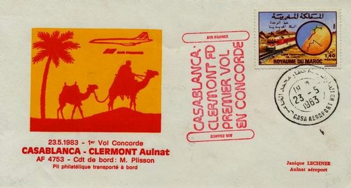 Souvenir Philathélique - Vol Air France 4753 du 23.05.1983 - Concorde - CASABLANCA - CLERMONT Aulnat - Commandant de Bord Pierre Plisson (7ème détachement).