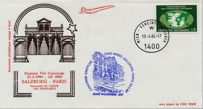 Souvenir Philathélique - Vol Air France 4905 du 23.04.1984 - Concorde - SALZBURG -PARIS - Commandant de Bord Jacques Schwartz (17ème détachement).