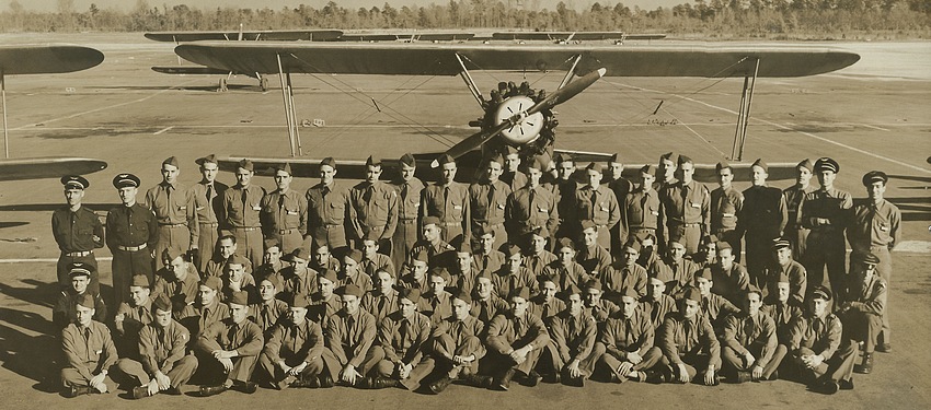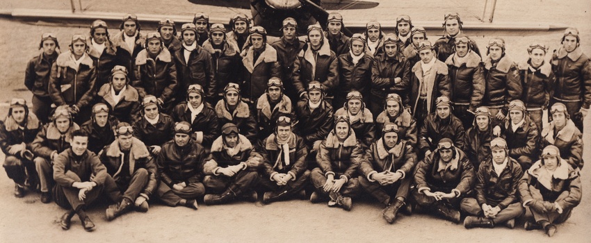 Photo 2 : 5ème escadrille - 2ème groupe - Décembre/Janvier 1944-45 - Avec les instructeurs : (à identifier).