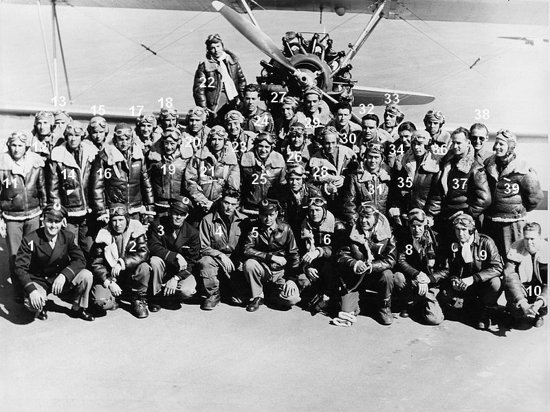 Craig Field (Alabama) - 16ème détachement. (de G à dte) : Amboise Fieschi - Toussaint Guidoni - Roger Barçon - Fernand Masson - Georges Obadia - Gilbert Nicolaï - Marcel Robert - Hubert Boutrin - Jean Dubern - Louis Boisguerin - Pierre de Jouvancourt. Jacques Hirsh - Georges Bernard - Paul Ceccaldi - Jacques Auriol - Michel André - André Rajaud - Roger Machabé - Pierre Chambige - René Duval - Etienne Barraquies - Emile Pourailly.